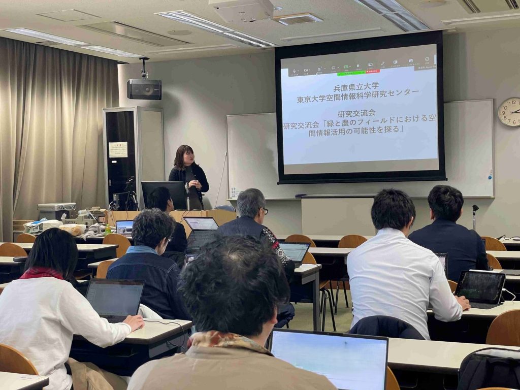 「緑と農のフィールドにおける空間情報活用の可能性を探る」をテーマに、兵庫県立大学と東京大学空間情報科学研究センター(CSIS)が、研究内容などを話題提供し、ディスカッションをおこないました。