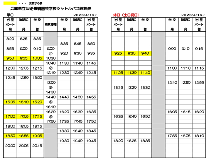 > シャトルバス時刻表 一部改正のお知らせ <2026.4.1~>